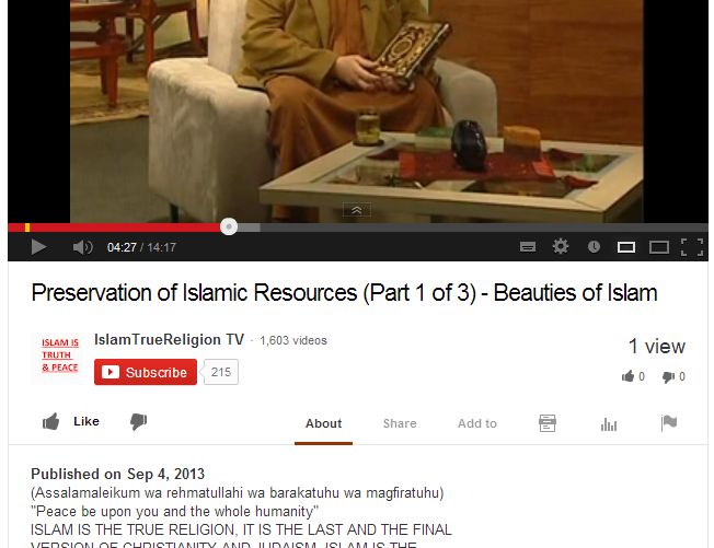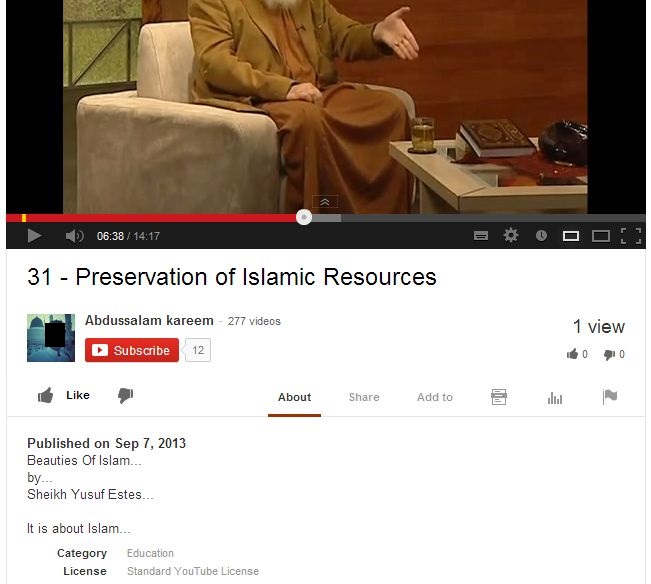 We thought we would take a moment and document a typical week on YouTube and the kinds of videos that are re-uploaded on a consistent basis. Aside from the misguided teachings of Yusuf Estes continually spread through various websites and satellite television stations all around the world, like Huda TV, GuideUS TV, Peace TV, Islam Channel, and others, the following videos were re-uploaded to YouTube over the past week alone: